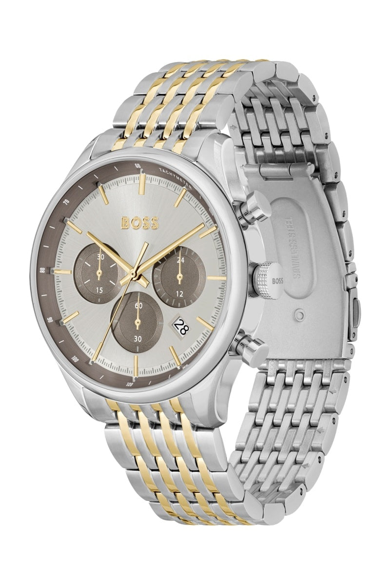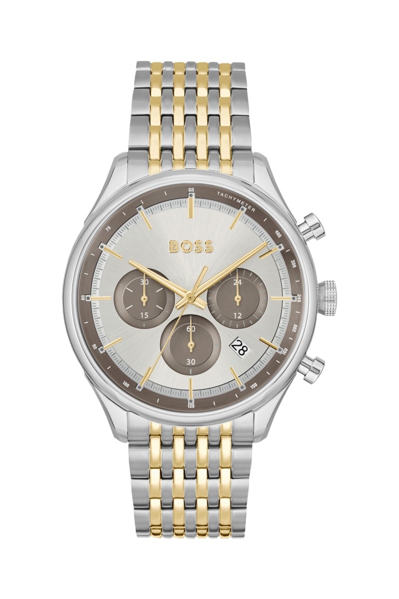 Relógio de quartzo em aço - Taquímetro - Prateado e dourado